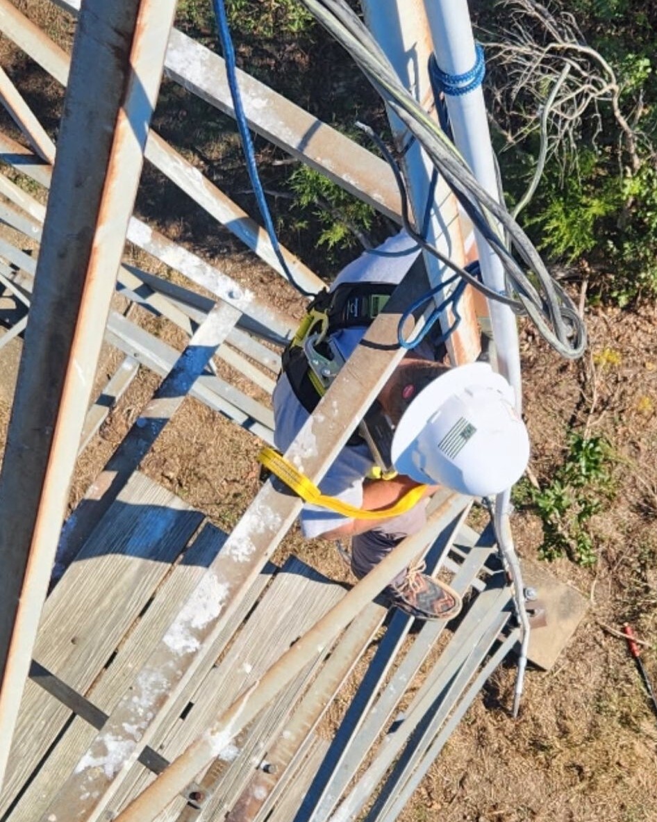 We made repairs to a busted conduit on this tower and added a light inside for aircraft visibility at night, amongst several other projects at this customer's ranch.